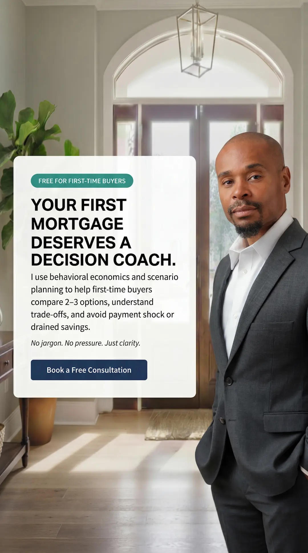 For buyers who want budget breathing room. Typically involves a 30-year fixed, lower down payment options, and avoiding points to preserve cash flow.